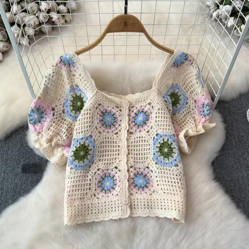 טופ סרוג עם צווארון מרובע (משלוח חינם)