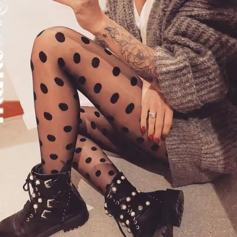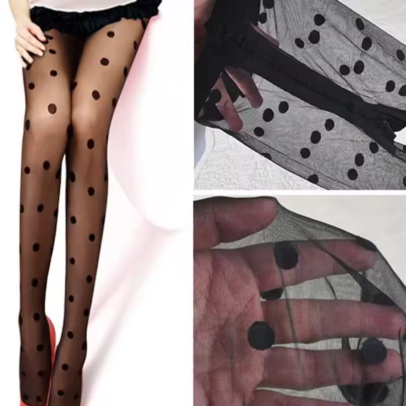 גרביונים חלקים בעיצוב תחרה ורשת בעלי נקודות הדפס הדוקות לנשים (משלוח חינם)